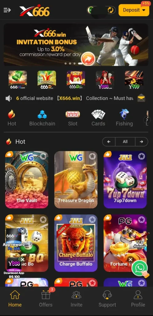 The X666 casino game provides attractive real cashback offers to reward its players. With every bet or game you play, you can earn a percentage of your losses back as cashback, helping you reduce risk and increase your chances of profit. These cashback rewards are automatically added to your account, making the earning process simple and convenient. This feature is especially useful for regular players who want to enjoy continuous gameplay while maximizing their overall earnings.